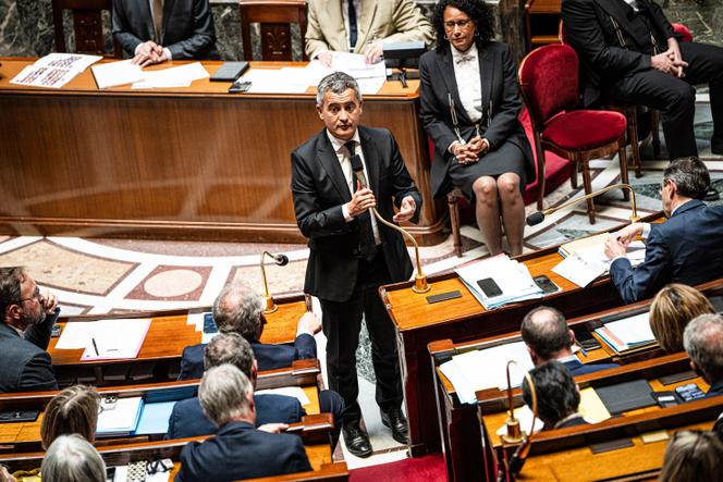 Le ministre de la justice,Gérald Darmanin,à l’Assemblée nationale,à Paris,le 27 mai 2025. JULIEN MUGUET POUR « LE MONDE » Un tweet le matin et un 20 heures le soir. Entre les deux,le premier ministre qui reprend devant l’Assemblée nationale sa principale proposition. Voilà une journée rondement menée pour Gérald Darmanin. Mardi 3 juin au matin,au lendemain des premières comparutions immédiates des auteurs de violences commises dans Paris,à l’occasion de la célébration de la victoire du PSG,le garde des sceaux a réagi sur X : « Une partie des condamnations pour violences,notamment commises à l’encontre des forces de l’ordre et pour destructions de biens,ne sont plus à la hauteur de la violence que connaît notre pays »,écrit-il. Quatre personnes d’une vingtaine d’années ont été condamnées à des peines de deux à huit mois d’emprisonnement avec sursis,assorties de 500 euros d’amende.