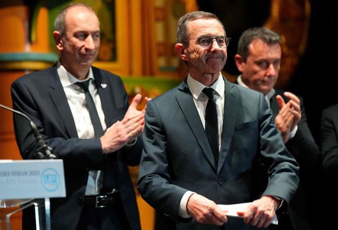 Le ministre de l’Intérieur Bruno Retailleau (au centre),entouré par le secrétaire général de UNSA-Police,Thierry Clair (à gauche),et par le secrétaire général du syndicat Alliance,Fabien Vanhemelryck (à droite),au Musée des arts forains,à Paris,le 8 janvier 2025. DIMITAR DILKOFF/AFP « Certains ont déjà essayé,mais rien ne peut se faire sans nous. » Devant un pupitre installé dans la grande salle du Musée des arts forains,son prénom scandé par la foule,le patron d’Alliance,Fabien Vanhemelryck,ne s’est pas privé de rappeler le poids de son syndicat à Bruno Retailleau. Le ministre de l’intérieur était invité,mercredi 8 janvier,à la cérémonie des vœux d’Alliance et de UNSA-Police,dont le bloc syndical avait recueilli 49,45 % aux élections professionnelles de 2022.
