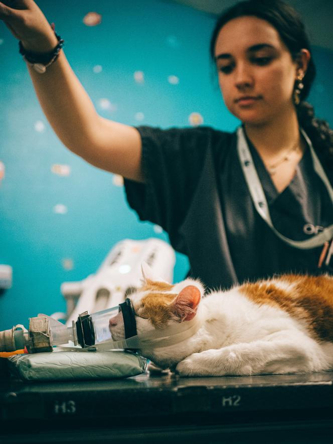Adolphe,le chat de Sophie Roux,est endormi avant de passer un scanner de contrôle post-radiothérapie,à la clinique vétérinaire Oncovet de Villeneuve-d’Ascq (Nord),le 20 janvier. STÉPHANE DUBROMEL / HANS LUCAS POUR « LE MONDE » « Quand j’ai appris pour son cancer,j’étais au chômage depuis un an. La même semaine,j’étais recrutée pour un poste à Bruxelles. Je me suis dit : “Voilà,ça va me permettre de payer.” » A l’annonce de l’ostéosarcome nasal dont était atteint son chat,Sophie Roux a pleuré. Et culpabilisé d’avoir tardé à repérer les symptômes. Mais elle n’a « pas hésité une seule seconde » à engloutir ses futurs salaires dans un traitement anticancer.