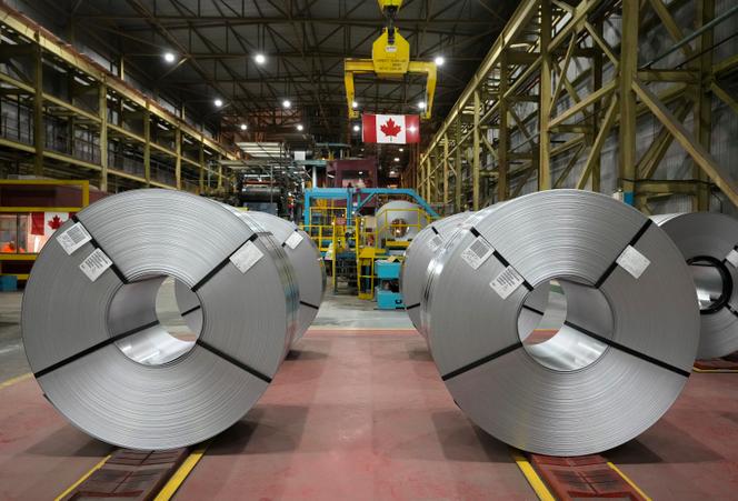 Des rouleaux d’acier exposés à l’aciérie ArcelorMittal Dofasco,à Hamilton (Canada),le mercredi 12 mars 2025. NATHAN DENETTE/AP L’économie mondiale plonge,mais on ne sait pas encore à quelle vitesse. Dans ses prévisions intermédiaires publiées lundi 17 mars,l’Organisation de coopération et de développement économiques (OCDE) table sur une croissance mondiale de 3,1 % en 2025,puis de 3 % en 2026,après avoir enregistré 3,2 % en 2024,sur fond de guerres commerciales et d’incertitudes liées à la politique du président américain,Donald Trump.