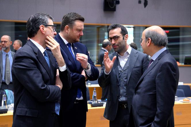 Le ministre italien de l’économie,Giancarlo Giorgetti (à gauche),le ministre croate des finances,Marko Primorac (2e à gauche),le ministre espagnol de l’économie,Carlos Cuerpo (2e à droite),et le ministre grec des finances,Kostis Hadjidakis (à droite),lors d’un conseil des affaires économiques et financières,à Bruxelles,le 18 février 2025. JOHN THYS / AFP « Environ 80 % des 18,6 milliards d’euros d’exportations que nous réalisons vers les Etats-Unis pourraient être touchés par la hausse des taxes douanières. » Telle est l’estimation dévoilée par le ministre espagnol de l’économie,Carlos Cuerpo,mardi 8 avril,en conseil des ministres,avant de présenter les premières mesures de son « plan de réponse et de relance commerciale »,doté de 14,1 milliards d’euros.