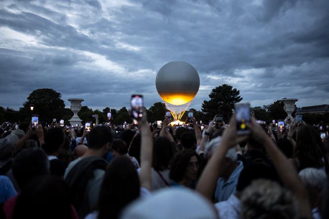 Chaque soir,qu’il fasse grand beau,qu’un orage menace,des flots de touristes,de Franciliens,des couples,des familles,ont afflué au jardin des Tuileries,pour assister au spectacle. Certains sont revenus avec leurs cousins,ont accompagné leurs amis grincheux rentrés de vacances plus tôt que prévu parce qu’il se passait « quelque chose » à Paris. Tous repartaient avec les mêmes photos dans le téléphone : la flamme posée entre les mains,la flamme au bout de la langue façon cracheur de feu,le ballon à l’hélium au bout pied pour les amateurs de foot. On a compté jusqu’à 30 000 personnes certains soirs.