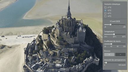 Illustration conceptuelle d'un jumeau numérique des territoires au Mont-Saint-Michel (GEOFIT/IGO/IGN)