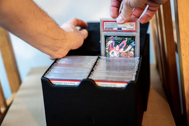 Un collectionneur présente l’une de ses cartes Pokémon,au Danemark,le 25 novembre 2022. IDA MARIE ODGAARD / AFP Pikachu n’était pas là,mais l’ambiance était électrique devant l’hypermarché Auchan de Bagnolet (Seine-Saint-Denis),vendredi 7 février. Près de 300 personnes attendaient,une heure avant l’ouverture du magasin,la mise en vente des coffrets « Dresseur d’élite - Evolutions prismatiques » des cartes à jouer Pokémon,très recherchées par les collectionneurs.
