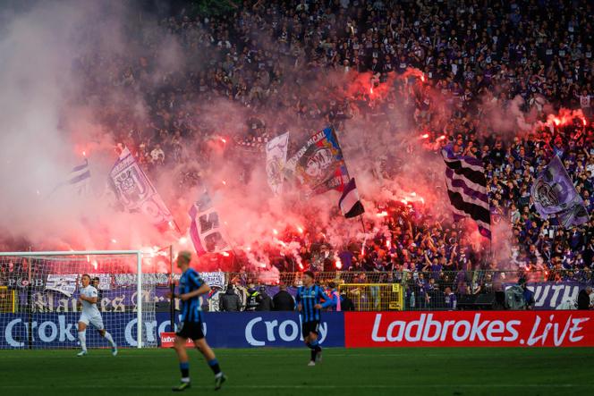 Lors de la finale de la Coupe de Belgique entre le FC Bruges et le Sporting d’Anderlecht,le 4 mai 2025,à Bruxelles. KURT DESPLENTER / AFP Crânes rasés,capuchons et vêtements noirs : des dizaines de hooligans venus,à Bruxelles,assister à la finale de la Coupe de Belgique,remportée 2-1 par le FC Bruges face au Sporting d’Anderlecht,dimanche 4 mai,se sont livrés à des actes d’une extrême violence dans le métro et dans des municipalités de la région comme Molenbeek,Jette,et Laeken. Tabassages,insultes,commerces dévastés et cris à destination de populations d’origine étrangère – « Rentrez dans votre pays »,« On va vous tuer »,« Non au voile » : l’appartenance des auteurs à des groupes d’extrême droite ultraviolents ne faisait aucun doute. Un groupe,le North Fanatics 13,a été désigné comme le principal instigateur de ces incidents.
