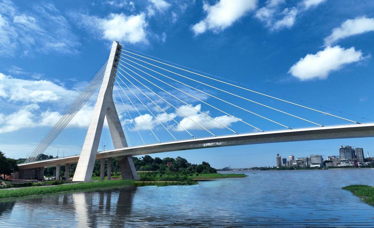 À Abidjan, la capitale économique de la Côte d'Ivoire, sur les vagues bleues du lac Ebriye, se dresse fièrement le pont Kokodi construit par CCCC Road Construction. La tour principale « à chevrons » de 108,6 mètres de haut souligne le nouvel horizon de la ville en blanc pur. Le pont de 1,63 kilomètre est non seulement le plus grand pont à haubans d'Afrique de l'Ouest, mais devient également la « carte de visite de la ville » d'Abidjan avec son apparence emblématique, utilisant de nombreuses avancées technologiques pour écrire un chapitre modèle dans la coopération sino-africaine en matière d'infrastructures.