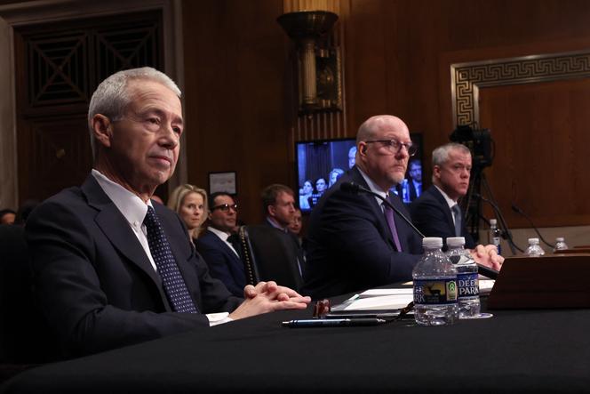 Joaquin Duato,Robert Davis et Chris Boerner,les patrons respectivement de Johnson & Johnson,Merck et Bristol Myers Squibb (de gauche à droite),témoignent devant la commission sénatoriale de la santé,de l’éducation,du travail et des retraites,à Washington,le 8 février 2024. KEVIN DIETSCH/GETTY IMAGES VIA AFP Ce n’est pas une averse mais un déluge. Après les laboratoires Lilly,Johnson & Johnson,Roche,Novartis et AbbVie,c’est au tour de trois autres géants de l’industrie pharmaceutique,les américains Bristol Myers Squibb et Gilead,et le japonais Takeda,d’annoncer,à quelques jours d’intervalle en ce début du mois de mai,des investissements de plusieurs dizaines de milliards de dollars aux Etats-Unis. De quoi ravir Washington. En moins de trois mois,les Big Pharma ont promis d’injecter près de 250 milliards de dollars (223 milliards d’euros) outre-Atlantique au cours des cinq prochaines années.