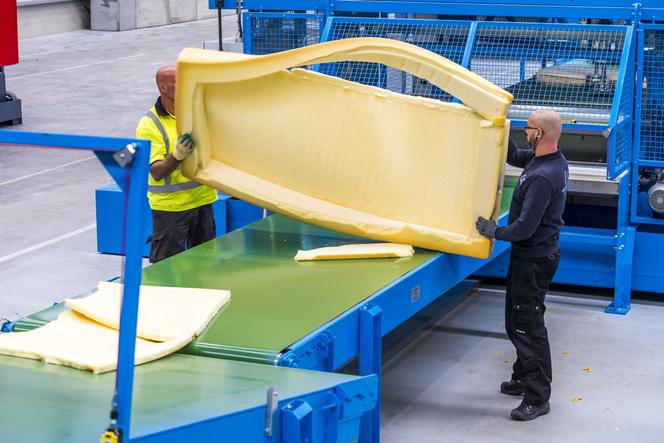 Dans une usine de RetourMatras à Etten-Leur,aux Pays-Bas,le 5 juillet 2021. LEX VAN LIESHOUT / EPA Sept cent cinquante mille matelas usagés,soit l’équivalent de 13 000 tonnes de matériaux,doivent y être recyclés chaque année. Tel est l’objectif de la première usine française du spécialiste néerlandais du recyclage des matelas RetourMatras,implantée depuis septembre 2024 à La Cavalerie (Aveyron),sur le plateau du Larzac. Il en possède quatre autres aux Pays-Bas et trois au Royaume-Uni,et recycle 1,5 million de matelas par an.