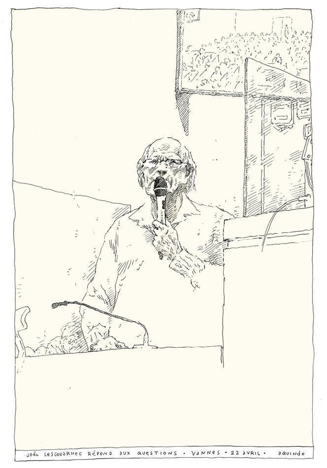 Joël Le Scouarnec répond aux questions de la présidente lors de son procès,à Vannes,le 22 avril 2025. SERGIO AQUINDO POUR « LE MONDE » « Monsieur Le Scouarnec,levez-vous s’il vous plaît. »