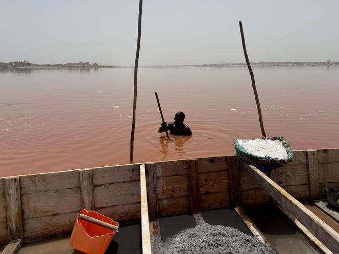 Ousmane Dembélé récolte du sel dans le lac Rose,au Sénégal,le 15 mai 2025. ABBAS ASAMAAN Est-il redevenu rose ? Rose orangé ? Voire rosâtre,persiflent les mauvaises langues ? « Peu importe la teinte tant qu’il y a du rose »,admet Ibrahima Mbaye,gérant du Gîte du lac et président de l’association environnementale Ar lac Rose (« protéger le lac Rose »,en wolof). A une trentaine de kilomètres à l’est de la capitale sénégalaise,cette étendue d’eau a été rendue célèbre par le rallye Paris-Dakar,dont l’arrivée finale s’est déroulée sur ses berges durant près de trente ans – jusqu’à sa délocalisation hors d’Afrique,en 2009,du fait de l’insécurité au Sahel.